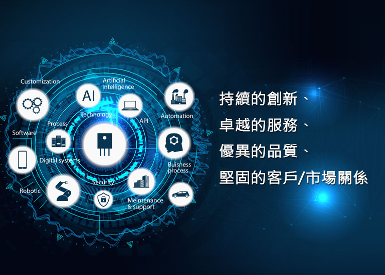 本公司努力開發(fā)第三代半導(dǎo)體相關(guān)應(yīng)用於電源管理的IC元件,致力於增加電子產(chǎn)品的轉(zhuǎn)換效率和節(jié)能省碳的功效,進(jìn)而提升成為世界級電源管理IC元件的品牌。